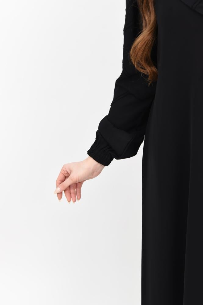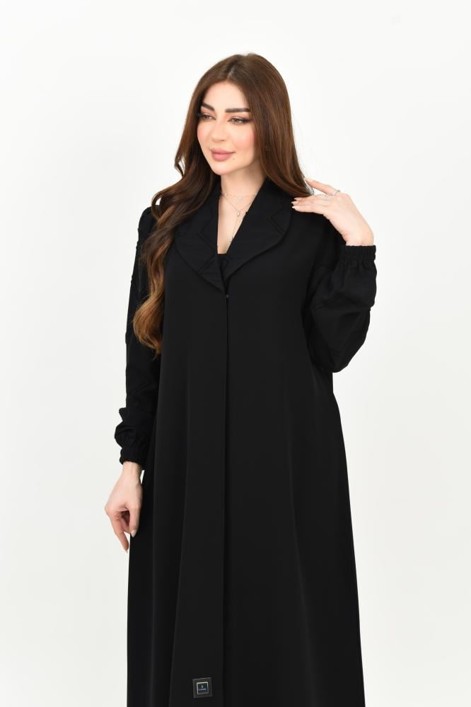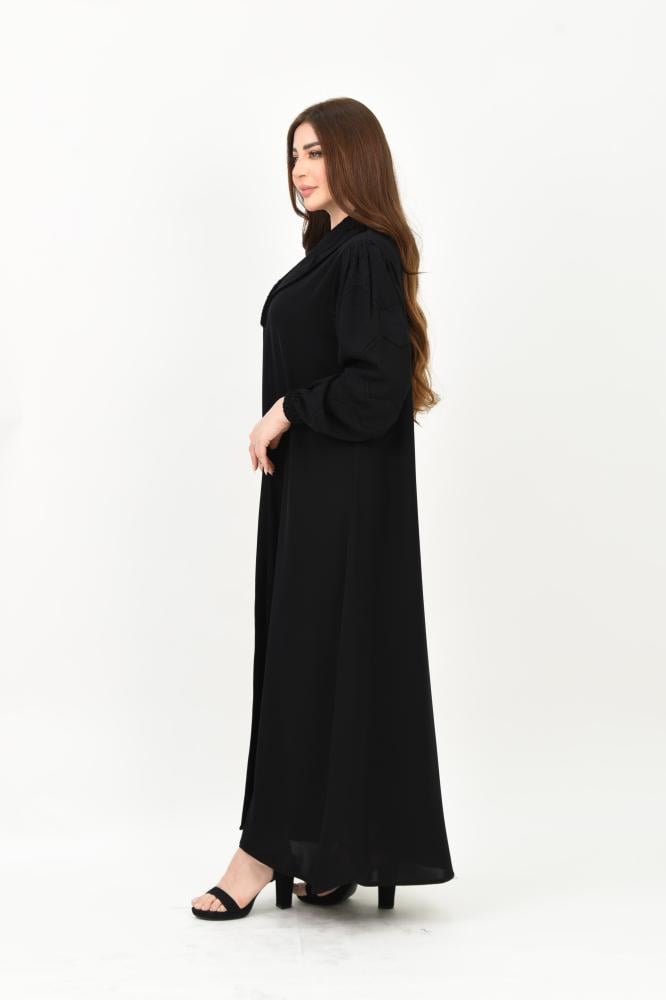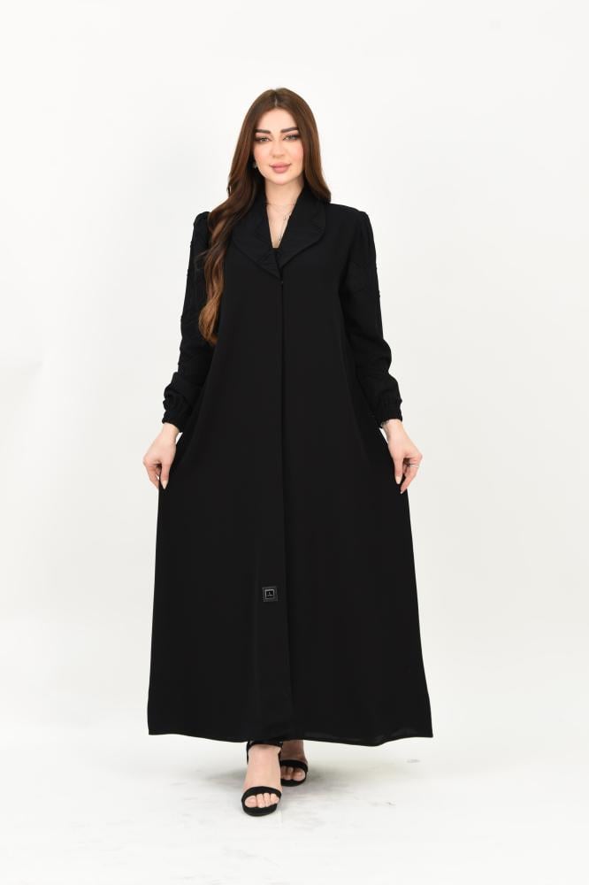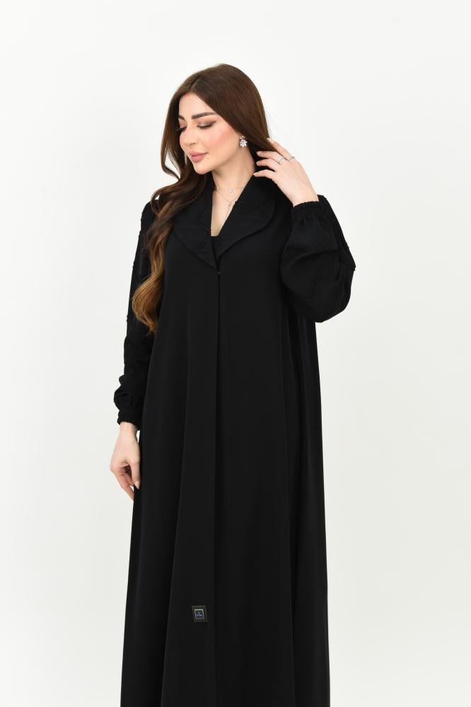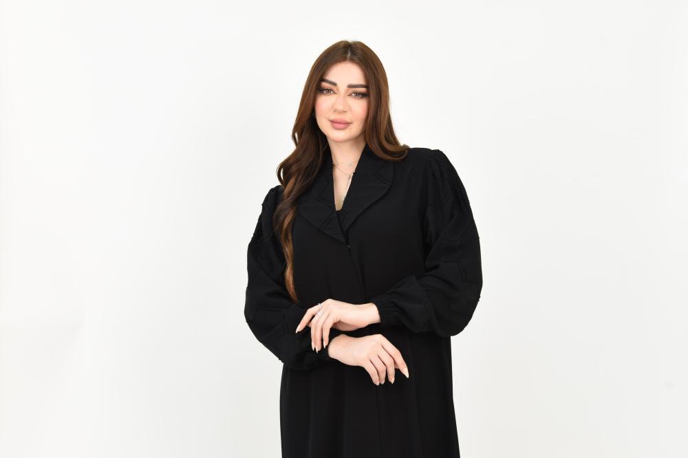 ذه العباية تتميز بتصميم راقٍ وعصري يلفت الأنظار. تأتي باللون الأسود الكلاسيكي، ميزينه باكمام تطريز يدوي داكن مما يضي لمسة من الأنوثة والجاذبية. الأكمام طويلة بتصميم واسع ومريح، وتجمع بين الأناقة والراحة. العباية مزودة بأزرار أمامية، مما يسهل ارتداؤها ويضيف لمسة عصرية.